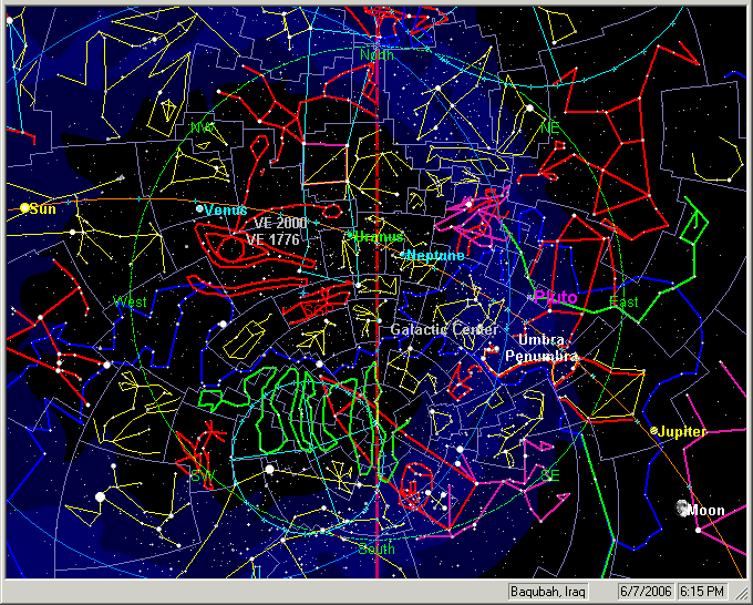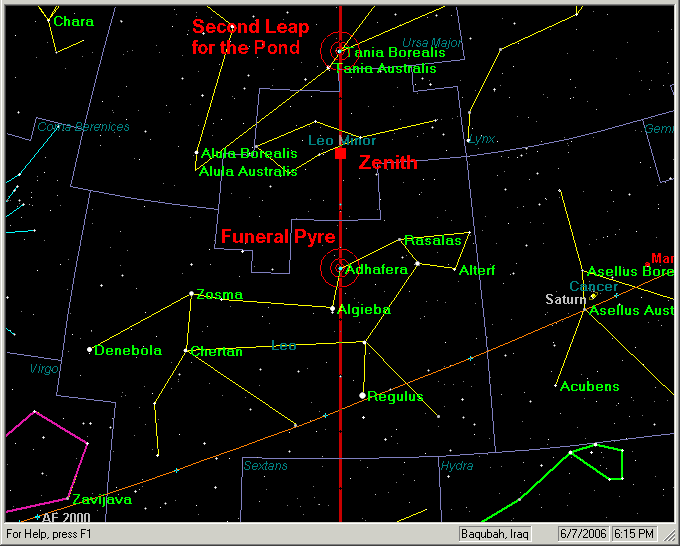 The Heavens are telling us by their alignment to the Funeral Pyre and the Second Leap of the Mesopotamian Giselle that the way to restore the ancient Pillar of Fire is to lay down the star lines to the Invincible Sun. The magic of Love's Sorcery is that life is. After the Victory over the Sickle of Time we are given life. The battle for Iraq is a battle to give life back to the Virgin of Heaven. The War Lords of Mesopotamia have been struggling against the sorcery of the Virgin and that has caused the destruction of the Wisdom of Civilization Past. Yet, sorcery is not the magic acts of rational discourse, sorcery is the process that causes life in the First Place. This is the Wisdom of the Ages that to which Abu Musab al-Zarqawi was misaligned until 6:15 pm on June 7, 2006. The Masters of the Heavens have taken him in order to restore the ancient pillar of fire.