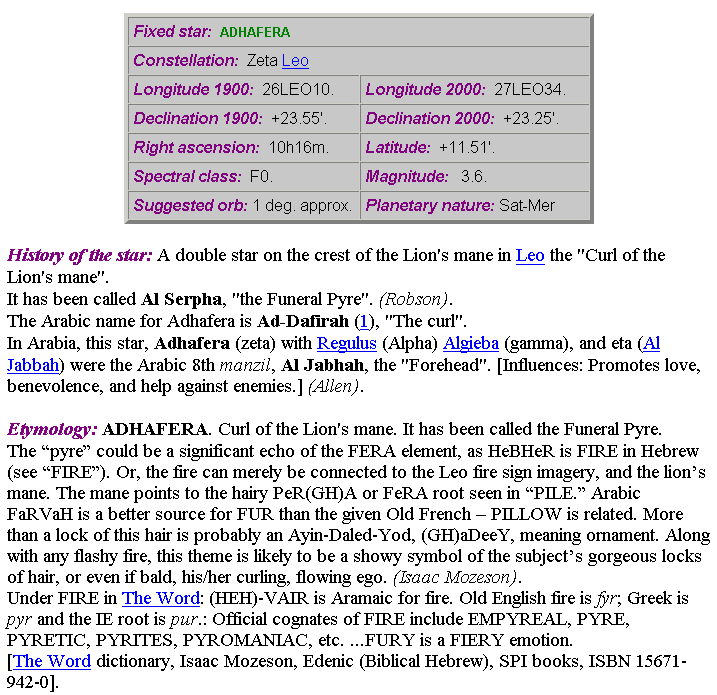 On the meridian south of the zenith in Little Leo is the Funeral Pyre, Adhafera.