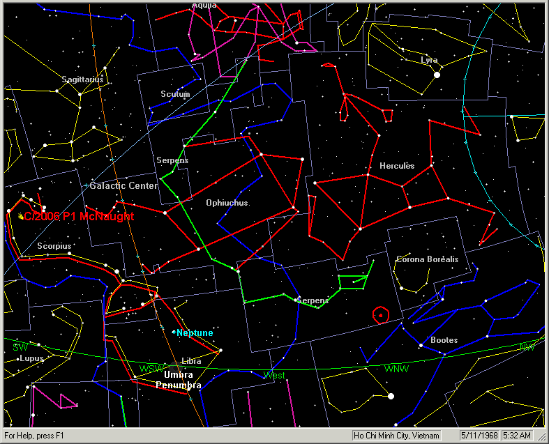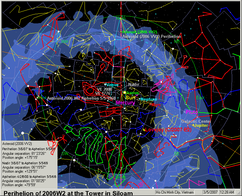 On March 5, 2007 at 12:28 AM, asteroid 2006 W2 sat on the meridian of the rice