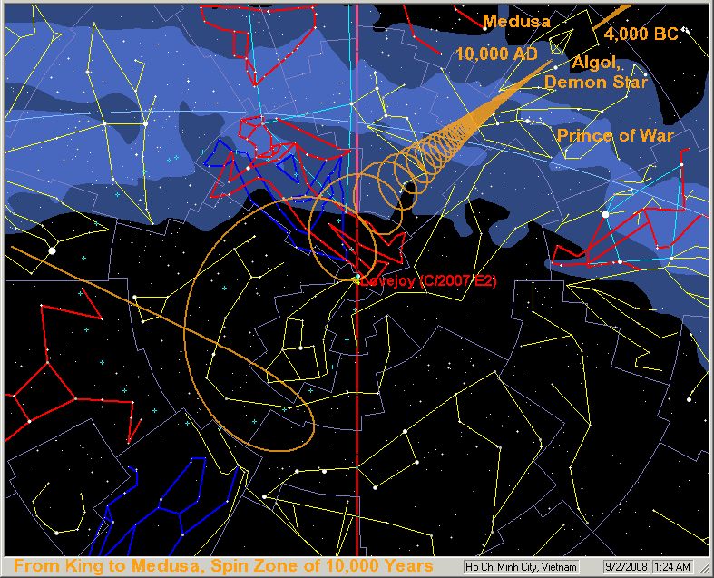 The visions of stars on a journey through time carry the most profound message that time has to offer. They show Synchronicity so profound that an honest eyewitness would have to declare, "It was intended to be so." If we accept this Swan Song on the NW horizon of the killing field, then death has no sting unless birth is forgotten. And yet, were it not for stardust that sows the Pangenesis of Panspermia, what meaning would birth have. To live just to die, is that Intelligent Design? Is there more to life than traumatic malcontent before death sets one free? A comet named Lovejoy and a child called Prince of Peace and a Lyra all coming down to rest on Mother Earth beneath a goat called Cornucopia and a Swan called the True Cross suggest that there is more to a Big Bang than runaway inflation and eventual red shifting darkness. Any man child with the slightest rational cognition cannot but state, "This was a premonition before it became the journey of Pangenesis of Panspermia." A Cosmic Father clearly accomplished the Lovejoy Intent, and a Cosmic Mother was the medium of a rational love. A rational love knows it own purpose because love is its intent.